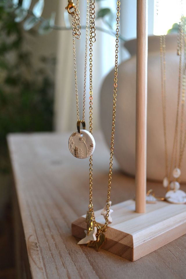 Modelé en argile naturelle, ce pendentif diffuse en douceur les huiles essentielles ou mes parfums émotionnels. Sa texture poreuse capte les senteurs et les libère tout au long de la journée, créant un rituel personnel et réconfortant.